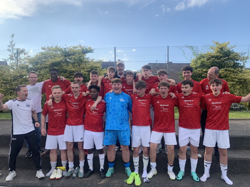 Die A-Jugend der JSG Ahrbach schafft am letzten Spieltag am berüchtigten Kieselborn in Heimbach-Weis in einem tollen Finale vor großer Kulisse den Klassenerhalt in der Rheinlandliga. 8 Siege, 1 Unentschieden und 7 Niederlagen, das macht stolze 25 Punkte! Das Trainerteam Volker Schmidt von Tippelskirch, Volker Wittelsberger, Ralph schmidt und Olaf Muth hat tolle Arbeit geleistet. Das Team, dem auch eine ganze Reihe von nominellen B-Jugendspielern angehört, kann stolz auf das Abschneiden in der zweiten Saisonphase sein, in der mit Erfolg um den Klassenerhalt gefightet wurde.
